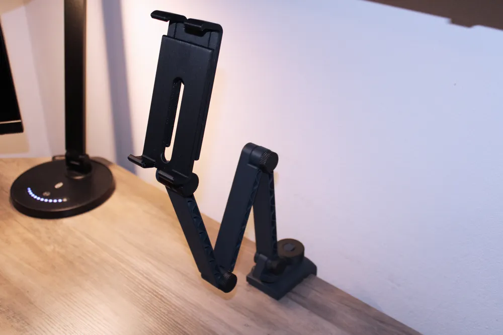يستوعب الأجهزة بمقاسات مختلفة، سواء كانت هواتف أو أجهزة لوحية، ويمنحك تجربة استخدام مريحة بدون الحاجة لحمل الجهاز باليد. مصنوع بجودة عالية باستخدام الطباعة ثلاثية الأبعاد، مما يجمع بين المتانة، الحركة السلسة، والمظهر العصري المناسب لأي مساحة عمل.