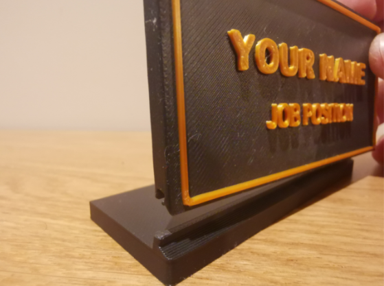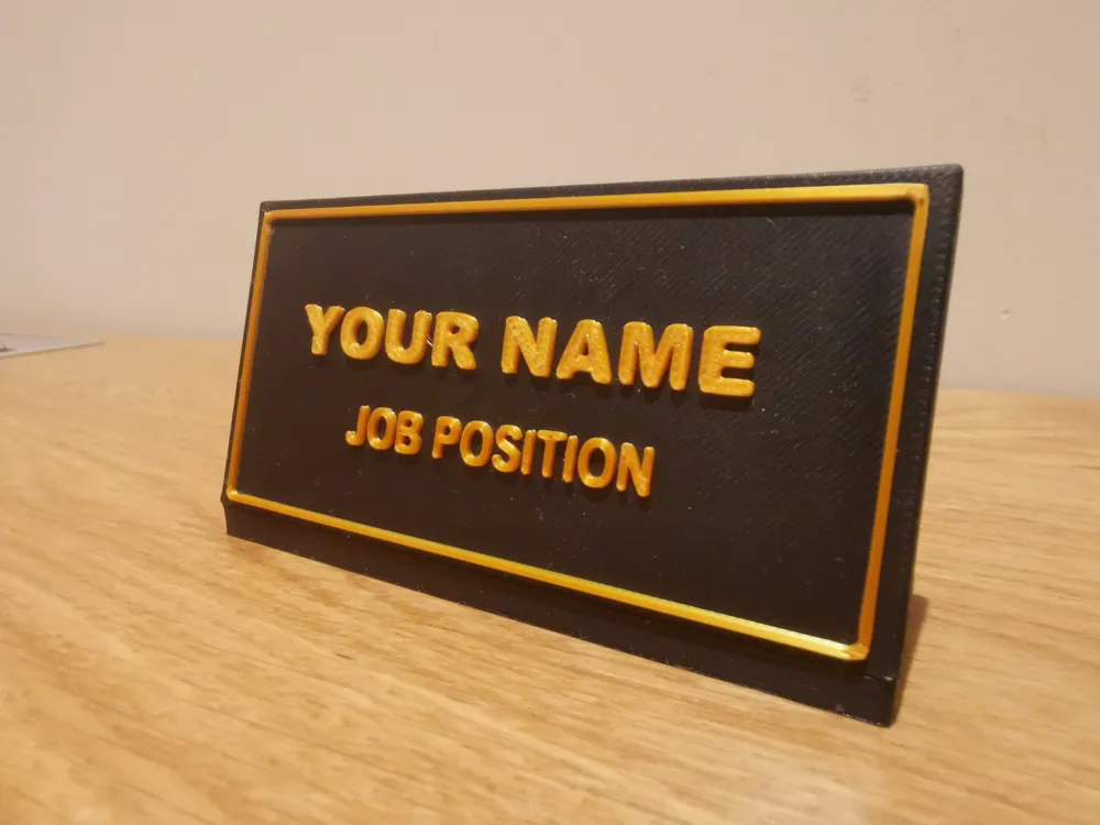 لوحة اسمهي لوحة مكتب مطبوعة ثلاثي الأبعاد ومجمعة يدوياً بتشطيب دقيق، تجمع بين متانة المواد وأناقة التصميم. تأتي بحواف مرتفعة ونص بارز يبرز اسمك ولقبك أو منصبك بوضوح. يمكن إضافة شعار الشركة، رمز تواصل، أو خط مخصص لتتناسب مع هوية علامتك التجارية أو ذوقك الشخصي. تصميمها عملي مع قاعدة ثابتة تضمن ثبات اللوحة على المكتب وتمنحها حضوراً احترافياً في قاعات الاجتماعات والاستقبال والمكاتب التنفيذية.